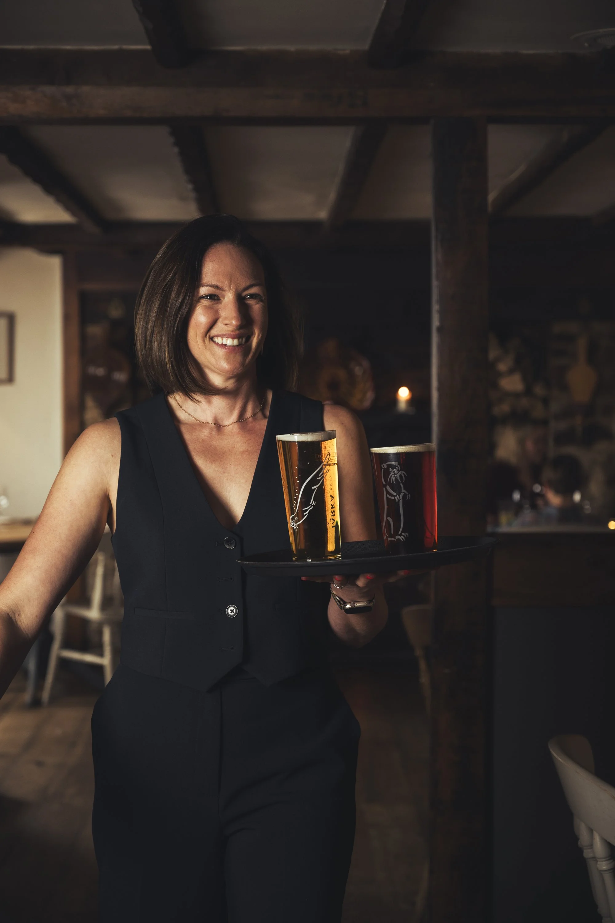I worked my way around the space of The Tytherleigh Arms, capturing the bar and restaurant from different angles. This included a range of close ups on features, furnishings and menus, as well as wider angles to show more of the space. I made sure that all the lights were on and we also lit lots of candles and the fire to give a sense of warmth and cosiness.